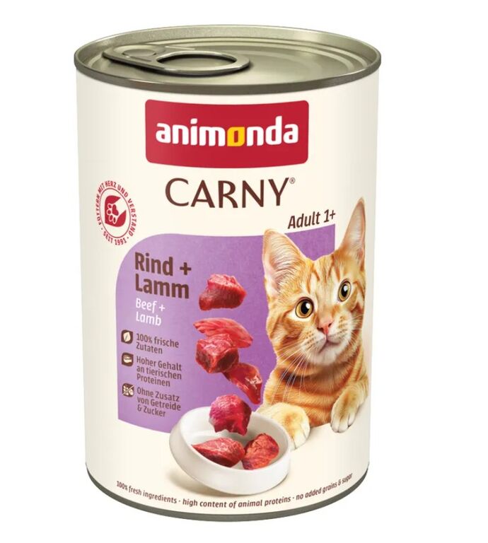 Kompletní krmivo pro dospělé kočky v běžné zátěži od 1 roku. Konzervy Animonda pro kočky v sobě skrývají jemně mleté maso, včetně kousků masa s patrnými masovými vlákny a vnitřnosti. Animonda masová konzerva pro kočky je zcela vyplněna touto masovou směsí, jen po okrajích je trochu ztuhlé želatiny a tuku. Konzervy neobsahují obiloviny a soju, cukr, konzervanty a barviva. Kvalitní krmivo pro kočky s přírodním taurinem, který prospívá funkci srdce, zraku a imunitě, dodává kvalitní kočce bílkoviny a je bezpečný pro její zažívání.