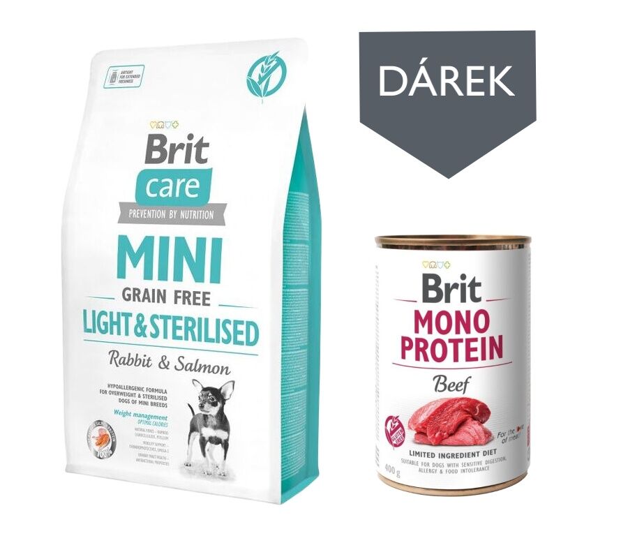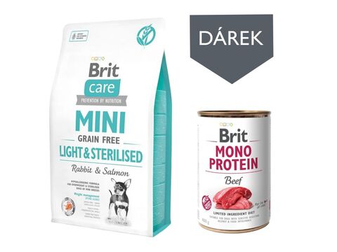 Brit Care Adult mini Grain Free Light & Sterilised Rabbit & salmon 2 kg +dárek Brit Mono P