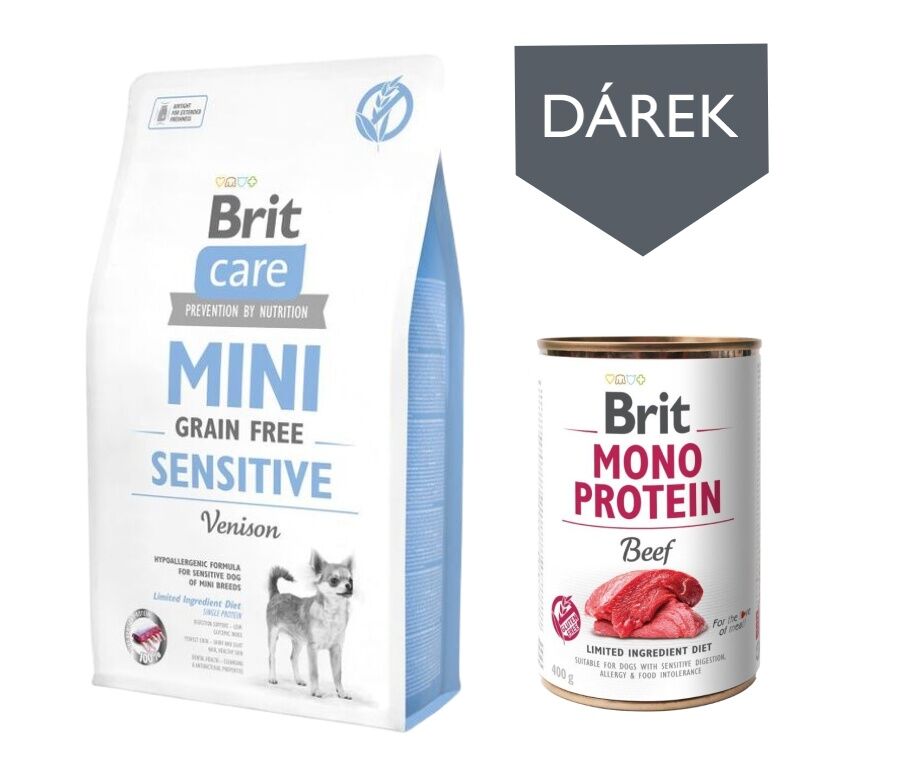 Brit Care Adult mini Grain Free Sensitive Venison 2 kg + dárek Brit Mono Protein Beef 400