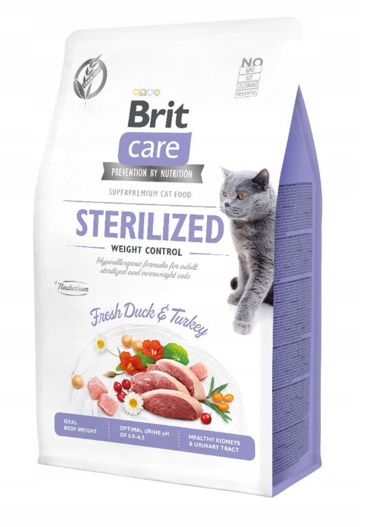Brit Care Cat Grain-Free Sterilized Weight Control, 2 kg kachna a krůta