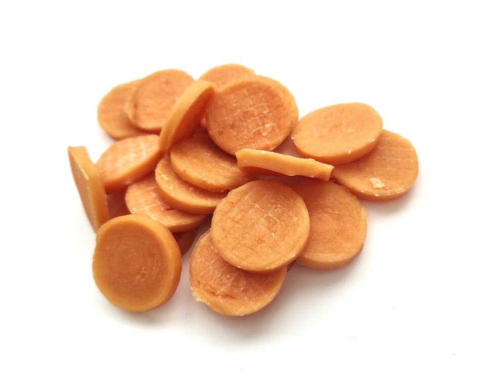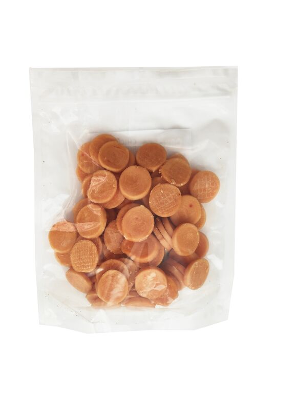 Voňavé pamlsky pro psy od 6 měsíců věku vyrobené z kuřecího masa. Lákavá pochoutka bude motivovat psa při výcviku nebo potěší jako lahodná svačinka mezi jídly. Masitá, měkká kolečka se snadno porcují lámáním. Pochoutka psa dlouho nezdrží od tréninku.