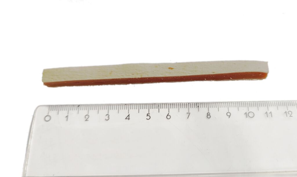 Složení: Kuřecí maso 66,5 %, treska 13 %, rostlinný protein 5 %, pšeničná mouka 5 %, rostlinný glycerin 5 %, kukuřičný škrob 3 %, sorbitol 2 %, sůl 0,46 %, sorban draselný 0,04 %
