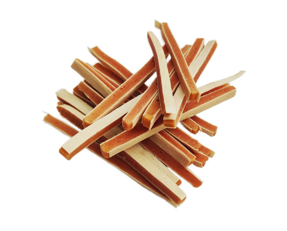 Voňavé pamlsky pro psy od 6 měsíců věku obsahují kuřecí maso a tresku. Lákavá pochoutka bude motivovat psa při výcviku nebo potěší jako lahodná svačinka mezi jídly. Masité, pružné hranolky jsou tenké, měkké a snadno se porcují lámáním. Pochoutka psa dlouho nezdrží od tréninku.