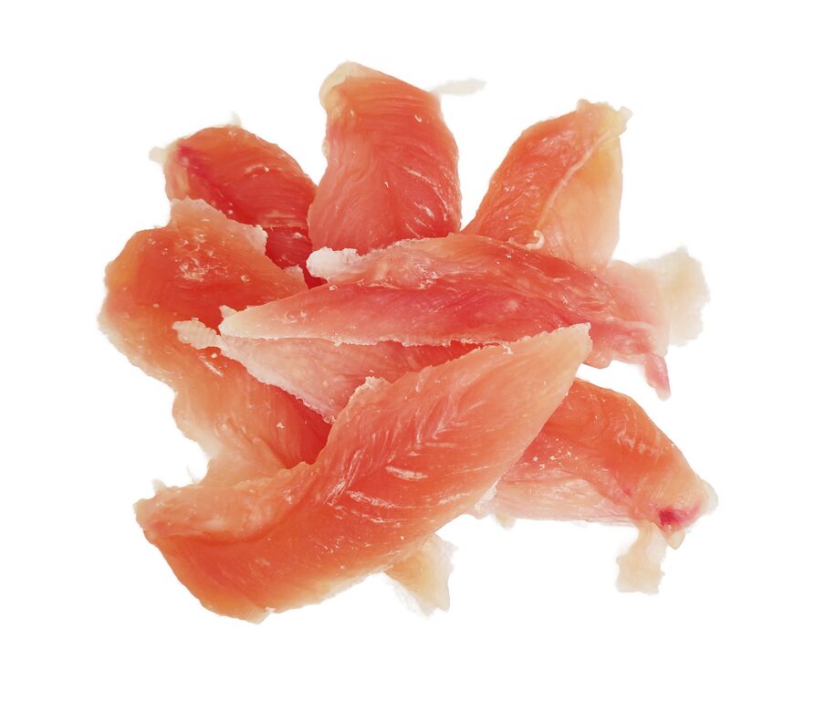 Měkký pamlsek vyrobený z kuřecího prsu je žvýkací pochoutka pro psy od 6 měsíců věku. Žvýkání zlepšuje dentální hygienu psa, čistí zuby od plaku a zubního kamene a masíruje při tom dásně. Výborná pochoutka uspokojí přirozený instinkt psa po kousání a odvede pozornost při nutkání kousat do nevhodných předmětů. Můžete podávat jako odměnu při hře nebo svačinku mezi jídly.