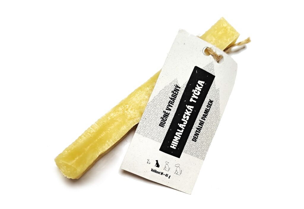 Přírodní dentální pamlsek pro psa vyrobený z mléka podle tradiční himalájské receptury - pomalým sušením (až 3 měsíce) získává tyčinka svoji tvrdost a trvanlivost. Tato pochoutka je vyrobena z kvalitního belgického mléka a mléčných komponentů. Tyčinka je bohatá na vápník a bílkoviny a je snadno stravitelná.
