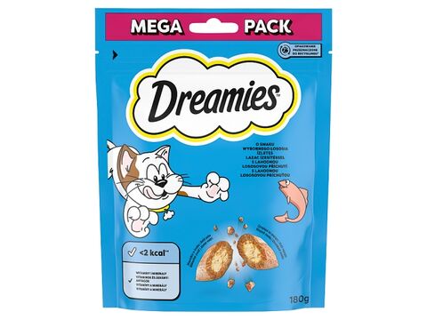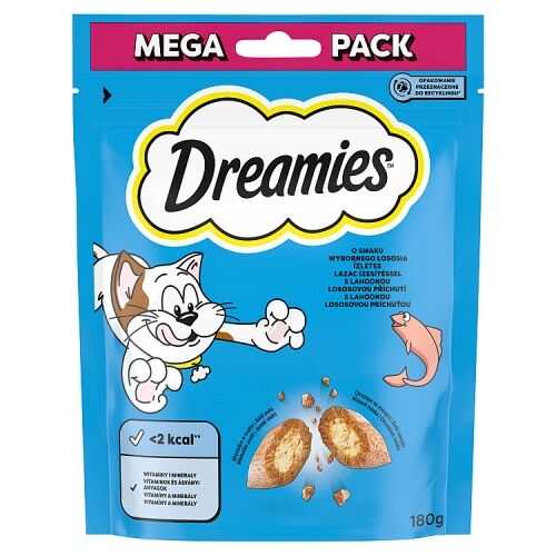 Dreamies křupavé polštářky plněné jemným krémem s příchutí lososa. Lahodná, pro kočky lákavá pochoutka dreamies, které žádná kočka neodolá, přímo vybízí k rozmazlování Vašeho mazlíčka. Pamlsek dreamies zpestří krmivo a kočka se něj bude těšit stejně jako na Váš příchod domů.
