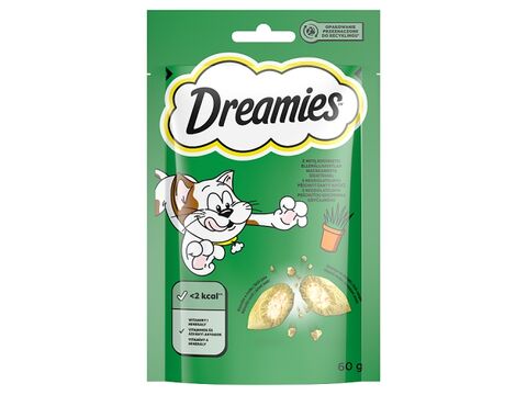 Dreamies křupavé polštářky plněné jemným krémem s příchutí šanty kočičí. Lahodná, pro kočky lákavá pochoutka dreamies, které žádná kočka neodolá, přímo vybízí k rozmazlování Vašeho mazlíčka. Pamlsek dreamies zpestří krmivo a kočka se něj bude těšit stejně jako na Váš příchod domů.