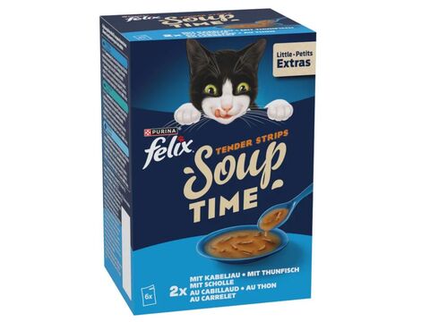 Felix Soup rybí výběr, polévka pro kočky 6 x 48 g treska, tuňák, platýs