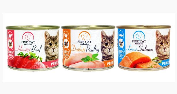 FINE CAT Exclusive konzerva pro kočky100% masa mix 6 x 200 g hovězí, kuře, losos