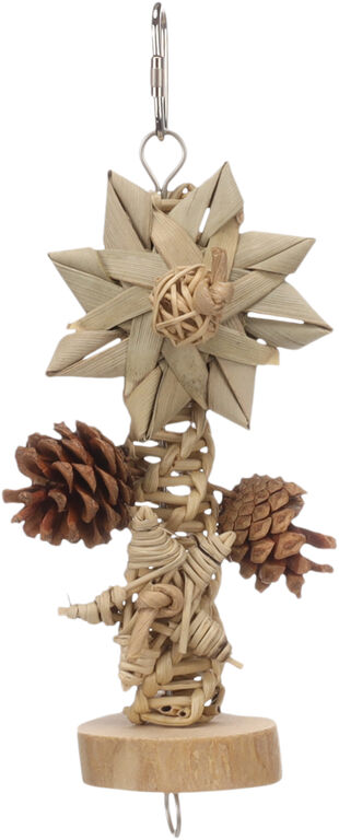 Přírodní závěsná hračka poskytuje vašemu papouškovi zábavu i stimulaci. Je vyrobena z bezpečných přírodních materiálů v stylové hnědé barvě. Ideální pro pobavení andulek a menších papoušků.