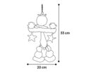Karabinka drží v kovovém oku drátu, který prochází vertikálně středem hračky a končí druhým očkem. Na závěsu jsou navlečeny: hvězdy z palmových listů, koule ze sola dřeva jako hlava, ratanový spirálový válec, který je provlečen horizontálně a tvoří ruce postavičky, s borovými šiškami a proutěnými hvězdami na koncích. Tělo tvoří mahagonový lusk, který je provrtaný a otvorem je protažený travní provaz jako nohy, na kterém jsou navlečeny díly z mahagonového lusku, lýkové koule a kokosové bloky.