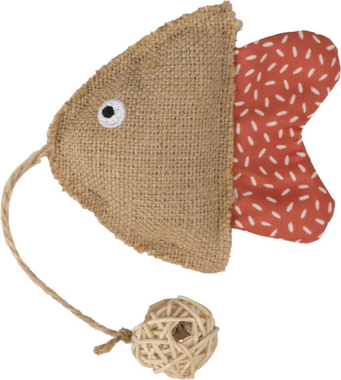 Flamingo hračka pro kočku ryba 23 x 9,5 x 3 cm se šantou a zvonkem textil hnědý