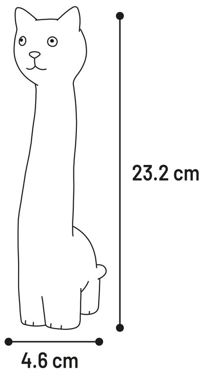 Dlouhá hračka pro psa, která se výborně nosí v tlamě. Svým podlouhlým štíhlým tvarem může připomínat klacek, ale je o poznání lehčí a měkčí a hlavně píská. Zvuk motivuje psa k další hře. Kočička má drsný povrch, který připomíná rozčepýřenou srst. Při kousání tak poskytne psovi i nový hmatový zářitek a masíruje jeho dásně. Za její dlouhý krk ji bude váš pejsek rád nosit všude s sebou. Zářivou oranžovou barvu oceníte při hledání hračky v trávě nebo i bytě.