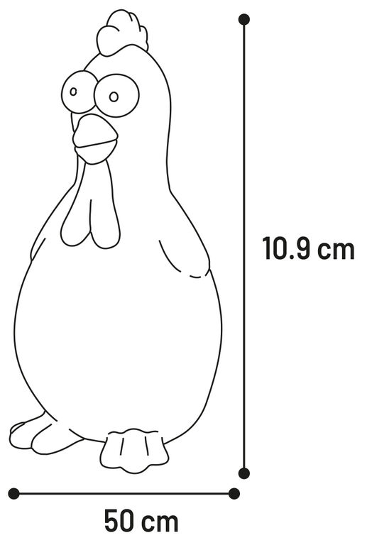 Hračka je lehoučká a měkká a může posloužit i k chytání, aportování ale především kousání. Kousání je instinktivní potřebou psa, která ho zbavuje stresu a uklidňuje. Když stisknete kulaťoučké duté bříško kuřete, uslyšíte pronikavé pískání. Zvuk motivuje psa k další hře.