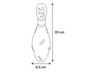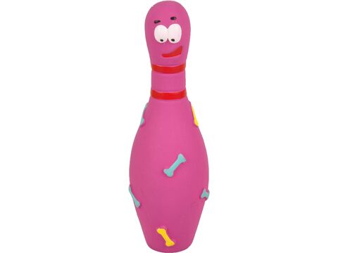 Měkká latexová kuželka je hračka pro psa. Má veselý vzhled s barevnými reliefními kostičkami okolo "těla". Na vrchní části je vybarvený obličej s velkýma bílíma očima a červenou pusou. Kolem "krku" jsou 2 červené pruhy.