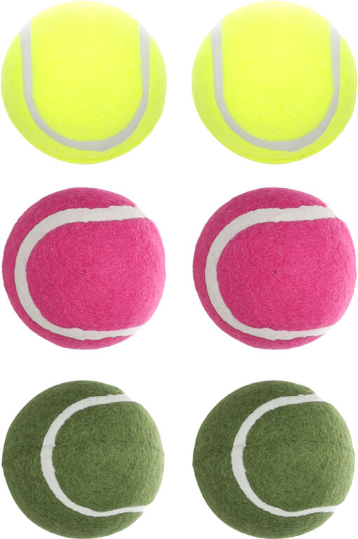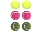 Sada tenisových míčků pro psy. 6 kusů rozměrově klasických tenisových míčků zabalených v malé síťce. Míčky jsou ve 3 barvách - žlutá růžová a tmavozelená. Tenisák je tvrdý a lze těžko zmáčknout. Tenisák je vhodný do vrhače míčků. Tato hračka zaujme každého psa, který rád honí, chytá, aportuje či kouše. Ideální na zahradu nebo do parku. Je vhodná pro psy všech věkových skupin.