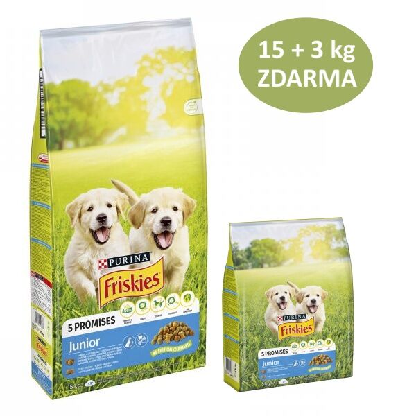 Friskies Junior štěně 15 kg + 3 kg s kuřetem, mlékem a zeleninou