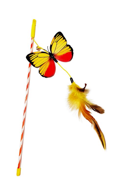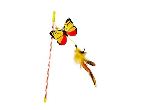 Jemně se pohybující se motýli a peříčka ve vzduchu nebo po podlaze, nenechají kočku v klidu a zatouží si je ulovit. Upozorní na sebe i díky zvonivému cinkání rolničky. Díky držátku jsou chráněny ruce páníčka, který může při hře udržet dostatečnou vzdálenost od kočičích drápků.