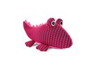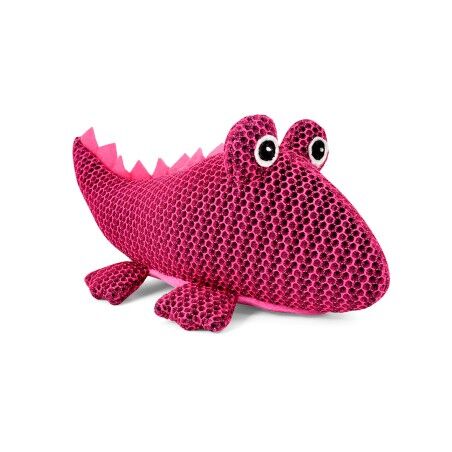 Neobvyklá textura může psa motivovat k dalšímu zkoumání hračky. Síťovina byla použita na tělo krokodýla, vypouklé vyplněné oči a ploché nožky. Bříško krokodýla je z růžového mikroplyše. Hřbetní pás je tvořen zubatým růžovým filcem. Oči jsou vyšívané. Uvnitř plného a měkkého těla se skrývá pískátko, které vzbudí zvědavost psa a zájem o hru.