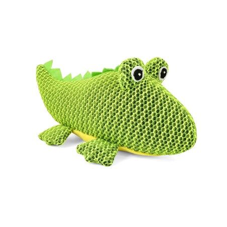 Neobvyklá textura může psa motivovat k dalšímu zkoumání hračky. Síťovina byla použita na tělo krokodýla, vypouklé vyplněné oči a ploché nožky. Bříško krokodýla je z žlutého mikroplyše. Hřbetní pás je tvořen zubatým zeleným filcem. Oči jsou vyšívané. Uvnitř plného a měkkého těla se skrývá pískátko, které vzbudí zvědavost psa a zájem o hru.