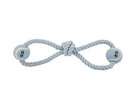 Přetahovadlo pro psa ze silného bavlněného lana ve tvaru osmičky se dvěma míčky na každém konci. Na míčcích jsou natištěné černé tlapky. Uprostřed osmičky je uzel. Použité materiály jsou bezpečné a odolné. Jsou dostatečně měkké, aby nepoškodily zuby vašeho psa. Přetahovadlo slouží i ke kousání. Bavlněná vlákna jemně čistí psí zuby od plaku. Kousání zase pomáhá posilovat čelist vašeho mazlíčka.