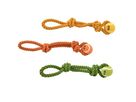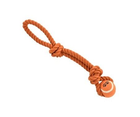 Hračka pro psy ze silného bavlněného lana o tloušťce 2 cm s recyklovanou přízí uvnitř a tenisového míčku o průměru 7 cm . Lano prochází díravým tenisákem a tvoří oko. Za tenisákem a uprostřed lana jsou silné uzly. Na konci lano tvoří velké oko pro držení.