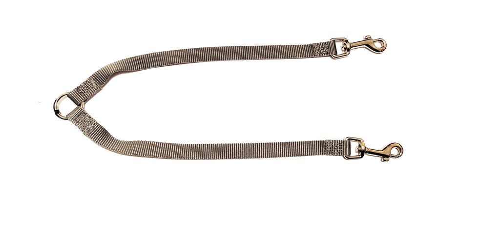 Nylonová rozdvojka na vodítko pro vedení dvou psů zároveň. Na kovovém očku jsou navlečeny 2 nylonové pásky zakončené kovovými karabinami pro připnutí k obojku. Do očka se připne karabina vodítka.