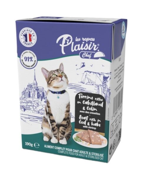 Plaisir Chef TETRAPACK pro dospělé kočky treska se štikozubcem a krevetami paté 190g