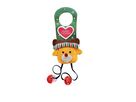 Na konci hračky je plyšová hlava soba s bílou tlamičkou a červeným nosem z bambulky. Oči jsou filcové přilepené. Sobík čelenku z vyplněného plyšového válce v bílo-červeno-zelené barvě a nad ní se tyčí hnědé filcové parohy. Z pod hlavy visí 2 dlouhé černé gumičky jejichž konce vedou do velkých plastových "rolniček" naplněných kuličkami. Rolničky vydávají štěrchavý zvuk.