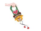 Vánoční hračka pro kočky - mávátko ze zeleného filcu s bílými vločkami a otvorem pro držení, má uprostřed přilepené filcové červené srdíčko s nápisem MERRY CHRISTMAS.