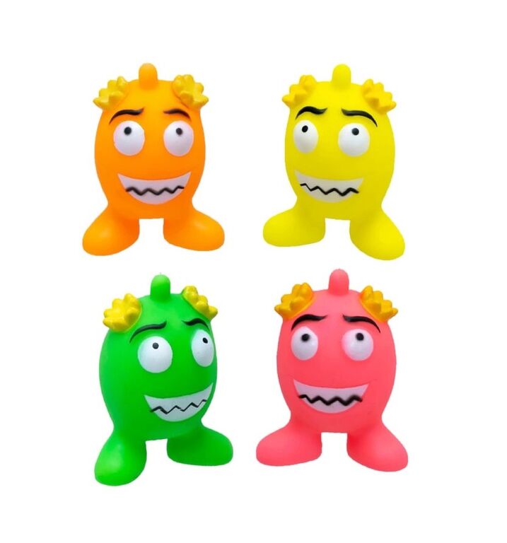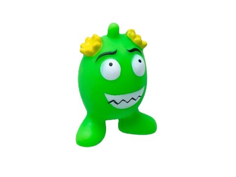 Lehká vinylová hračka vhodná pro malé a střední psy. Měkké a duté vajíčko má uvnitř připevněné pískátko a při stisknutí zapíská. Zvuk motivuje psa ke hře. Vajíčko má vylisované nohy, vypouklé oči a výstupky na hlavě. Oči a pusa jsou nabarveny bílou barvou. Po stranách hlavy jsou výstupky se zoubky ve žluté barvě.