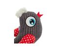 Ptáček má povrch těla ze strukturovaného plyše připomínající pleteninu. Chocholka na hlavě je z plyše s delším vlasem, oči jsou vyšívané a všitý zobáček je filcový. K vydatně vyplněnému tělu jsou přišita křídla z červené puntíkaté sametové látky a opět bohatě vyplněna. Uvnitř ptáčka je ukryto pískátko, které stimuluje zájem psa o hru a podporuje jeho interakci. Nožky ptáčka tvoří silné lano s uzly a střapci na konci, upletené z červených a bílých pramenů.