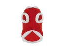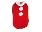 Obleček pro psa pro společné prožívání vánoční atmosféry. Slabší sametová mikinka z mikroplyše v červené barvě s bílým kožíškovým lemem kolem krku a otvorů pro přední nohy a na konci oblečku. Obleček se zapína na suchý zip na hrudi. Pro dobré přichycení jsou na konci oblečku oka z černé gumičky pro zadní nohy a ocas. Na zádech za krkem jsou 2 bílé plyšové bambuky.