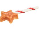 Vánoční pamlsek pro psa. Klasická 12 cm dlouhá buvolí tyčinka je doplněna o proužek na červeno obarvené kůže, na konci ozdobena hvězdičkou. Tyčinka připomíná kouzelnou hůlku víly.