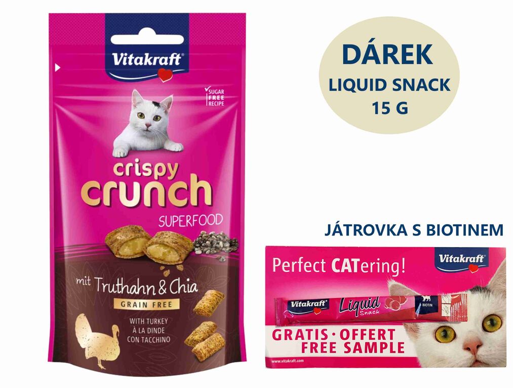 Vitakraft Crispy Crunch 60 g krůtí a chia + dárek Vitakraft cat Liquid snack játrovka s bi
