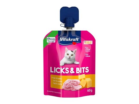 Vitakraft Licks & Bits (60 g) svačinka sýr šunka + dárek Vitakraft cat Liquid snack játrov