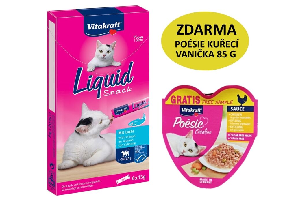Vitakraft Liquid Snack omega 3-losos 6 x 15 g+ dárek Vitakraft cat Poésie Creation kuře ze