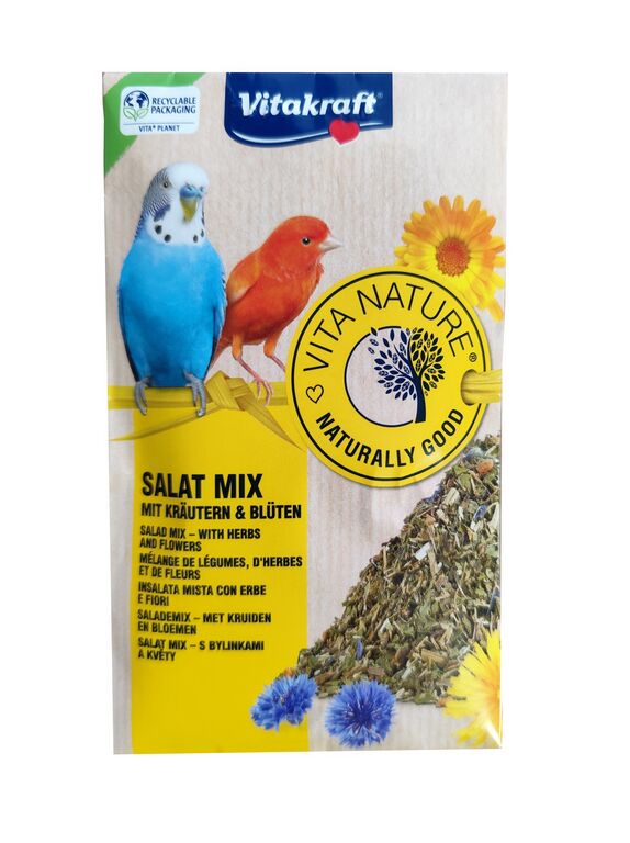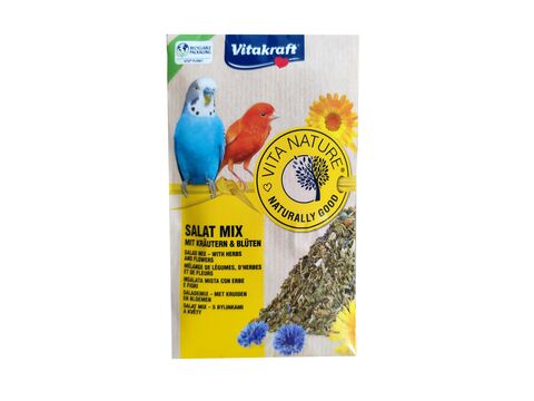 Přírodní krmivo pro okrasné ptáky s jemnými bylinkami, cizrnou a pampeliškami. Chutné krmivo přináší zpestření a výživu. Obsahuje okvětní lístky měsíčku a chrpy. Krmivo je šetrně sušeno pro zachování všech přírodních vitamínů. Více informací