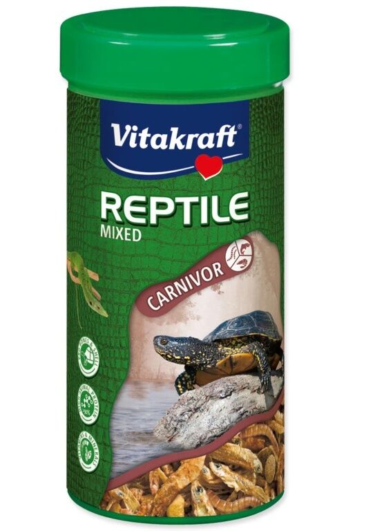 Krmná směs pro masožravé plazy - odpovídá nárokům vodních a bahenních želv, ještěrek, varanů a scinků. Kompletní krmivo má vysoký obsah bílkovin, vitamínů a minerálů. Složení udržuje optimální poměr vápníku, fosforu a vitamínu D3 pro zdravé kosti a vývoj krunýře. Bez přidaných barviv, příchutí, cukru a konzervantů.